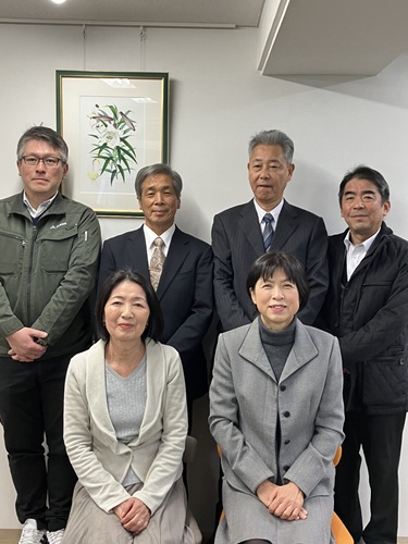 (写真後列左から:JA谷崎俊幸様・副組合長堀川英利様・組合長矢野史明様・JA森部高央様