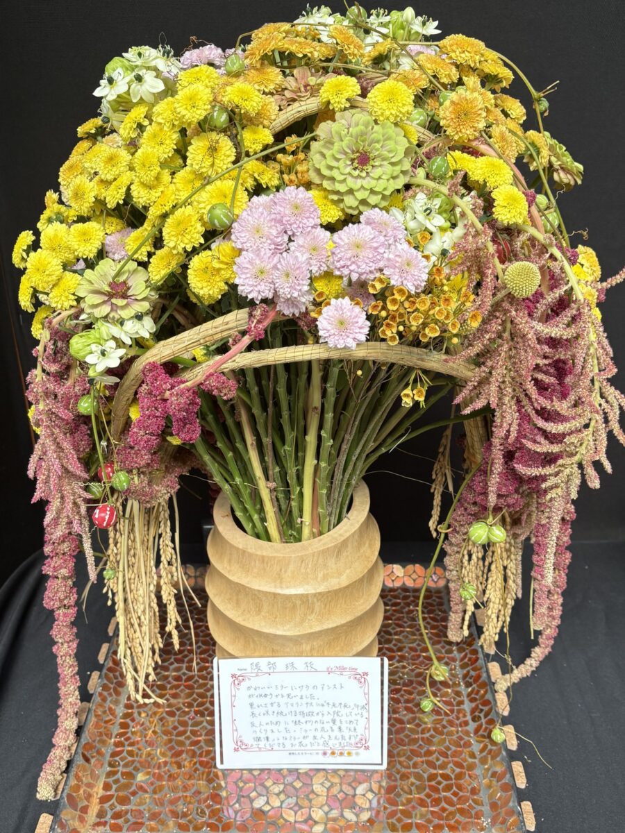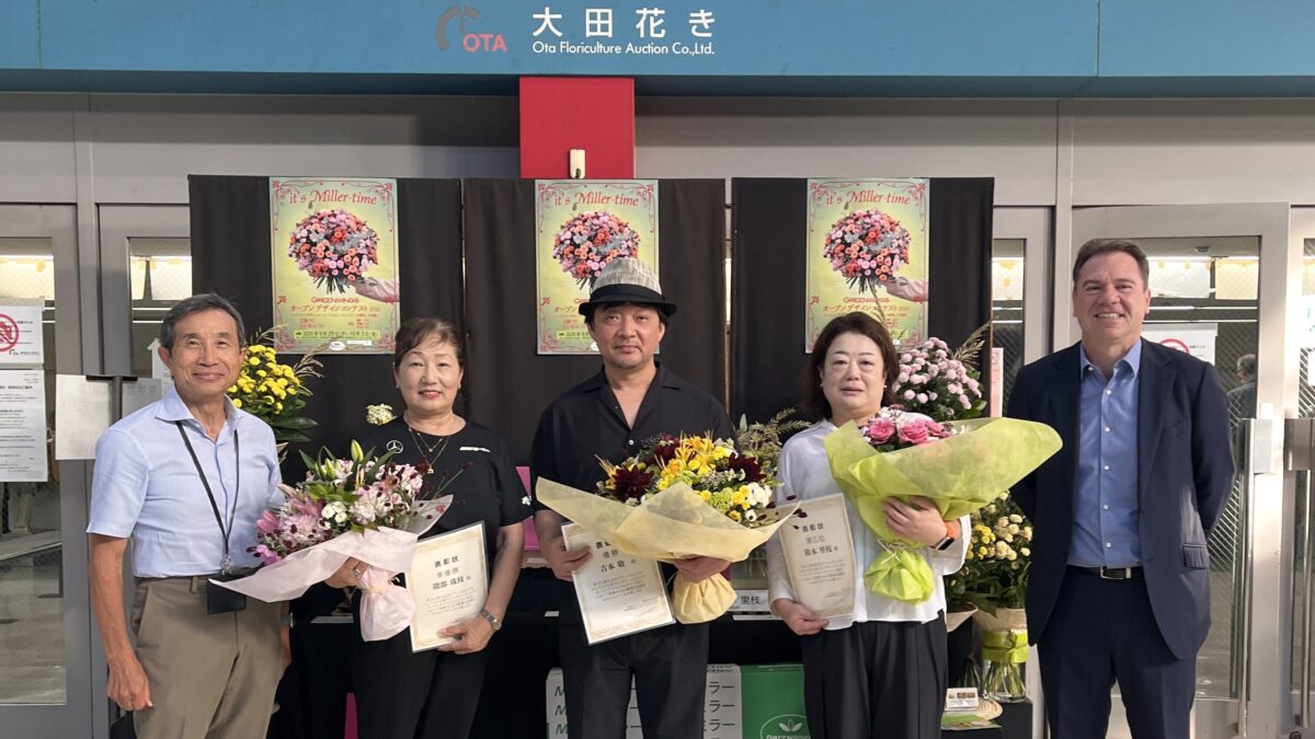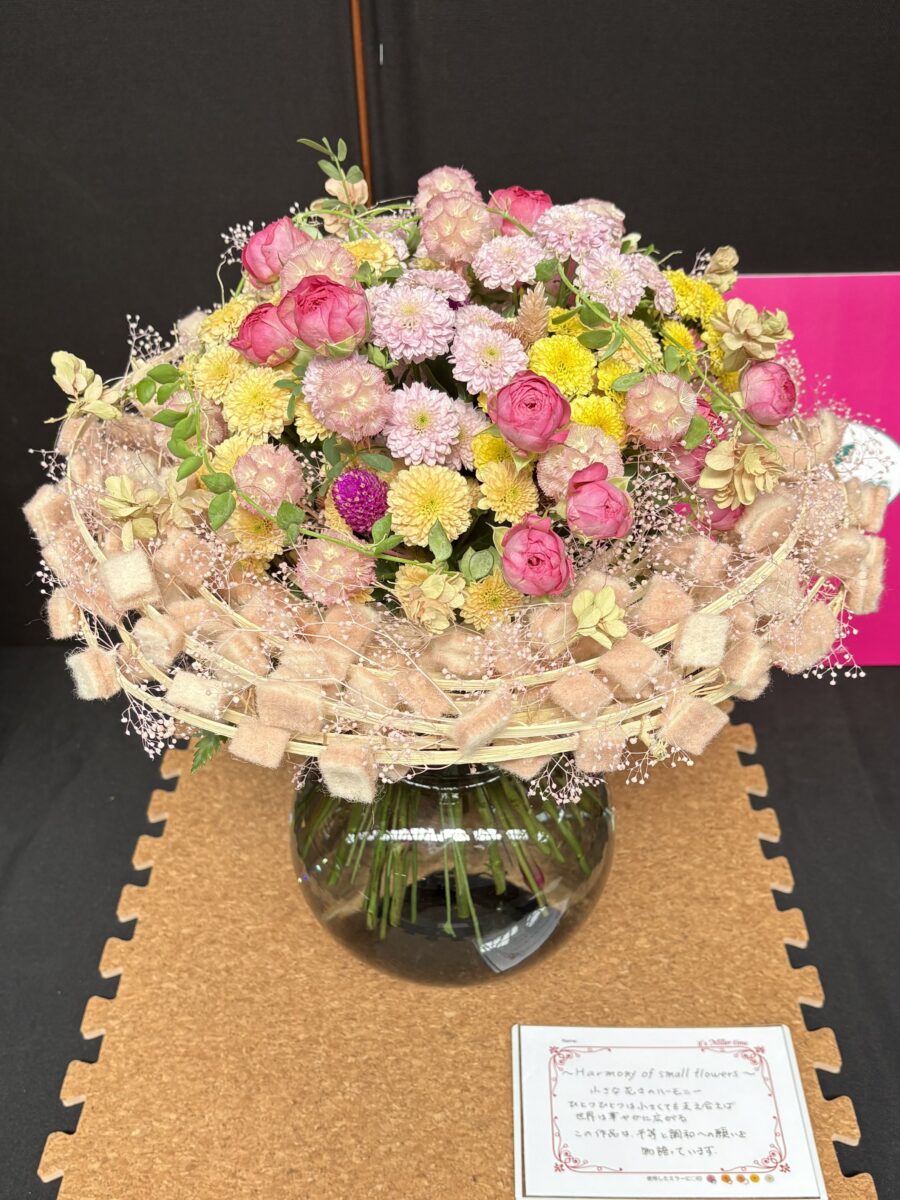 今回のテーマは 「スプレーマム『ミラー』を使用した花束」でした。ミラーと向き合い、多彩なアイデアにより制作された花束は、買参人の皆さま、市場関係の皆さま、来場された多くの方々を楽しませてくれ、ミラーの可能性をさらに広げてくださいました。