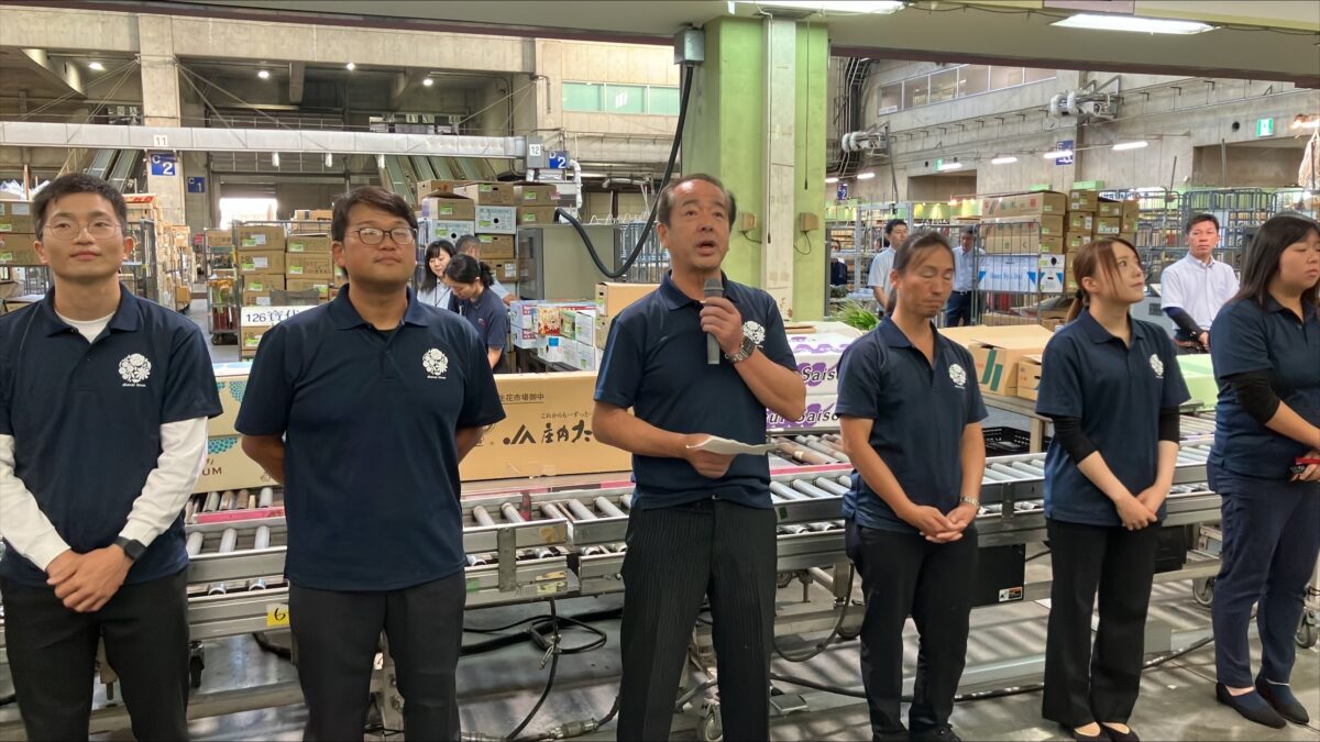 本日は、セリ前の貴重なお時間を頂戴し、山形県庄内町の花のPRに伺っております。