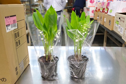 鉢物のスズランは現在 生産者様が1人となってしまいましたが、1鉢1鉢丁寧に手をかけて栽培されていらっしゃり、今期も花付きが良く、株のバランスも良い優良な商品となっております。