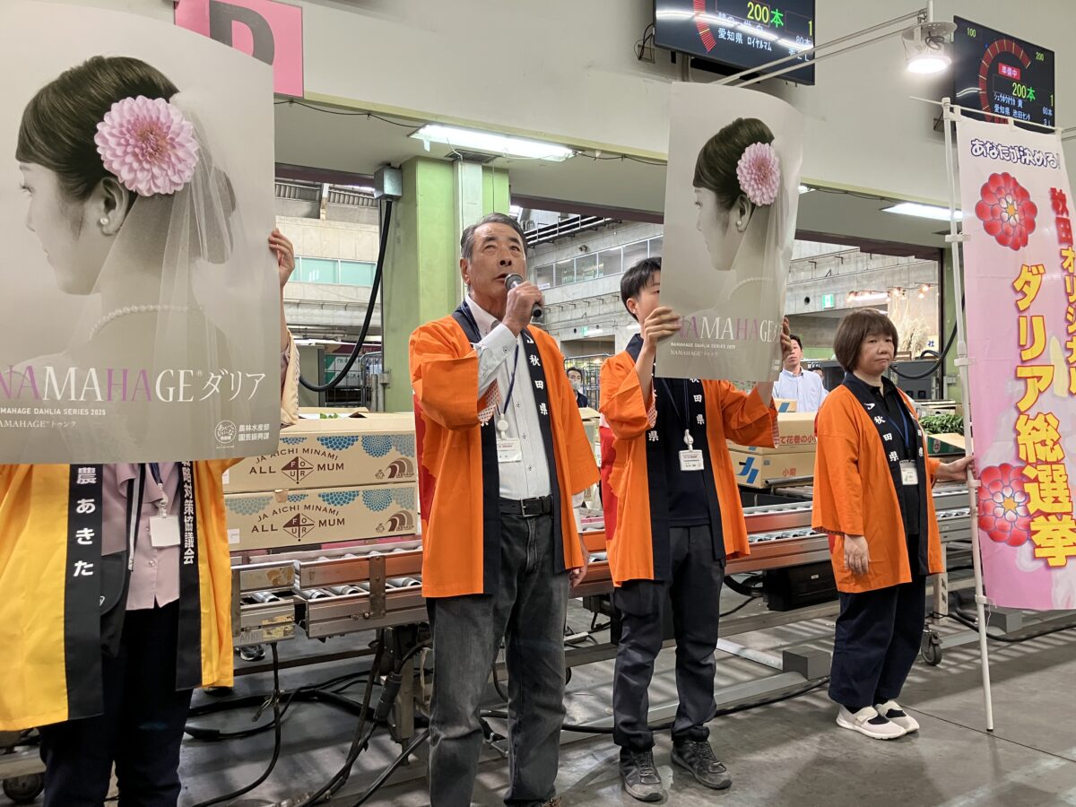 これから当産地の旬に向かって出荷量も増加して参りますので、一本でも多く、一円でも高く、秋田のダリアをお買い求めいただきますよう、お願い申し上げます。