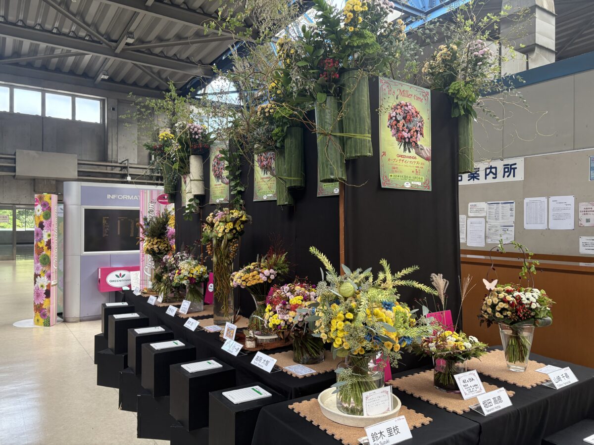 今回のコンテストでは、この 「スプレーマム ミラーを使った花束」 というテーマで作品を募集し、15名の方から素晴らしい作品が集まりました。