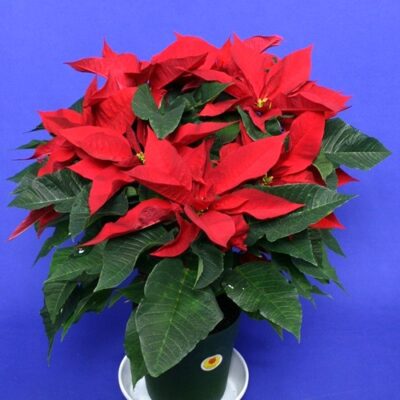 ホウ葉は、朱赤色の他に黄色や白色もあります。かつてインディオたちは、このホウ葉から染料を作ったり、茎から出る乳白色の液を解熱剤として利用したようです。また、北欧では赤い色に魔よけの力があるとされ、好んで飾られているようです。ポインセチアは日光が大好きで、寒さや冷たい風は苦手です。夜は必ず室内に入れるようにしてください。水は土の表面が乾いたらたっぷりあげてください。