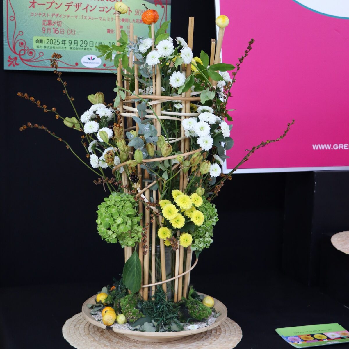コンテストに先駆け、レン オークメイドさんによるデモンストレーションが行われ、ミラーシリーズを使った多彩なアレンジメントが生み出されました♪
