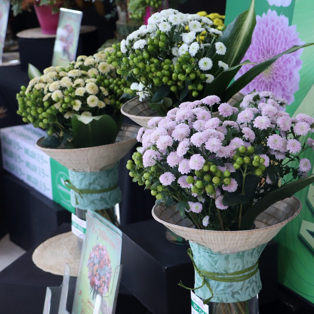 今回のテーマは 「スプレーマム ミラーを使用した花束」。