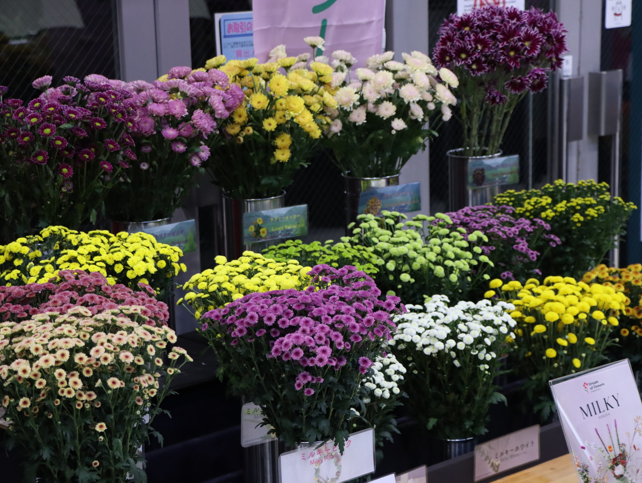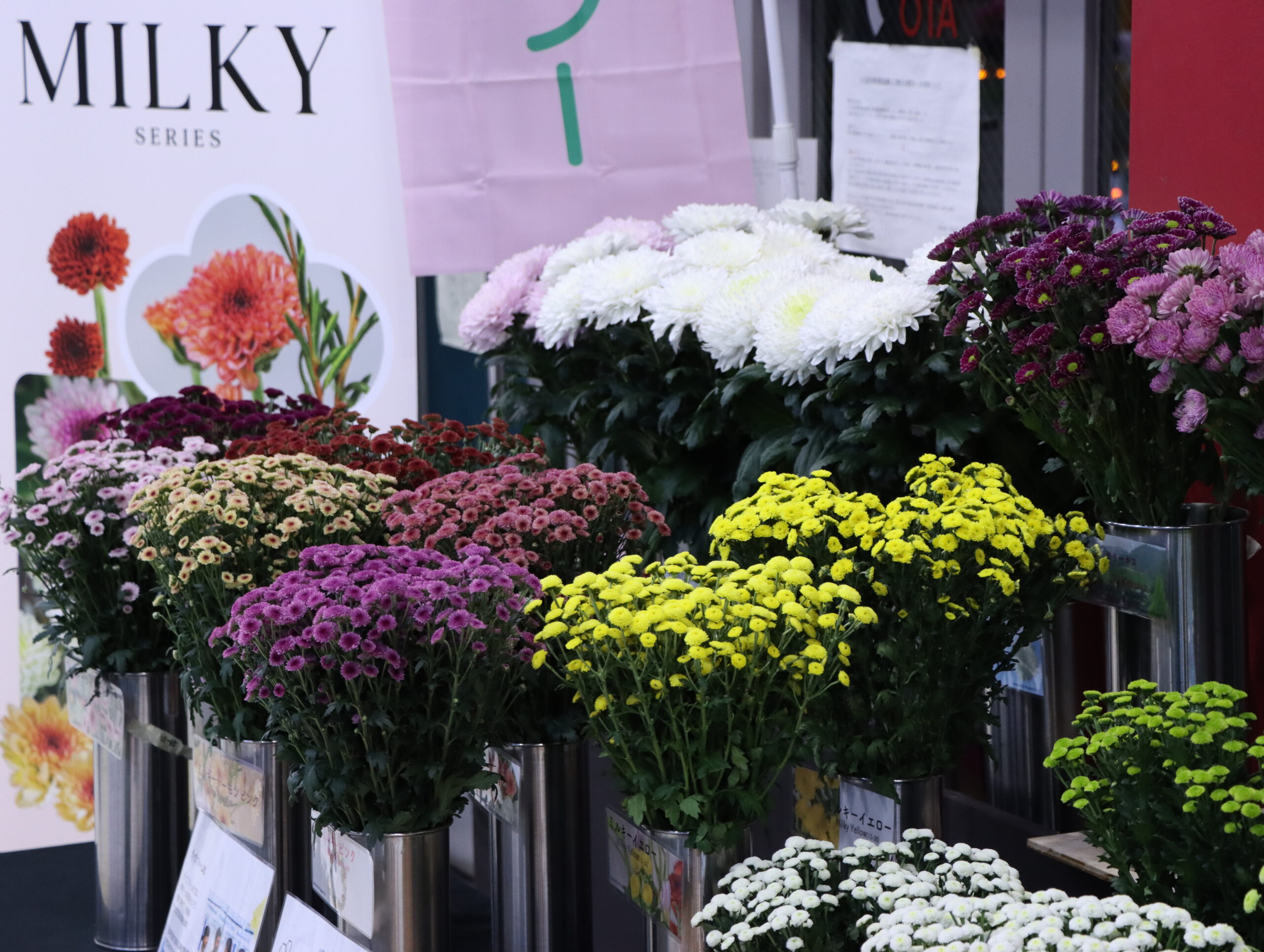 今回は“ミルキー”のプロモーションとともに、新品種スプレーマムも展示しています。