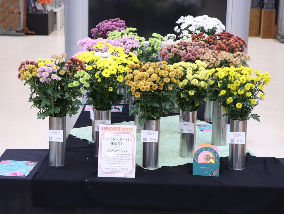 ドイツに本社を構える花き育種メーカーの セレクタ・ジャパン株式会社より、オランダ・デッカー社の最新スプレーマムの中から、年末年始シーズンにぴったりなシングルタイプとポンポンタイプを中心に展示いたしました。