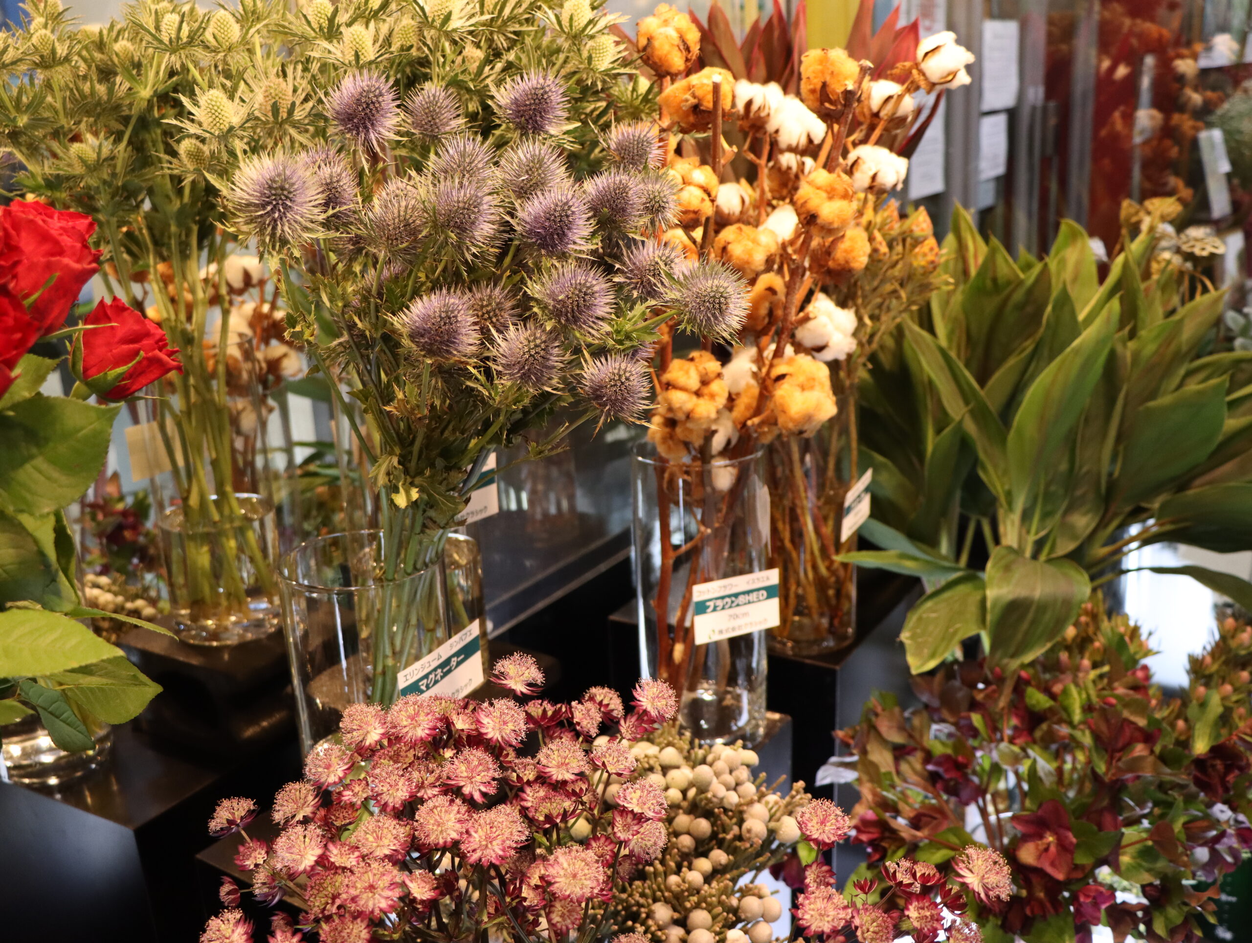 ふわりと優しい質感のコットン、香り豊かな針葉樹、存在感のある実ものなど、花束はもちろん、リース・スワッグ・オーナメントづくりに大活躍。