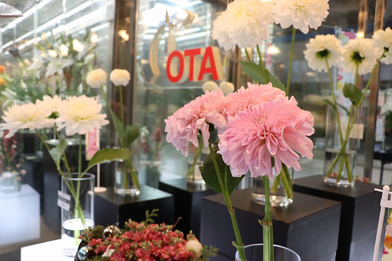毎年恒例となっている、JA庄内たがわ・JA庄内みどり・JAあまるめ・JAそでうらより、山形県庄内地域を代表する秋冬の花きを展示しました。