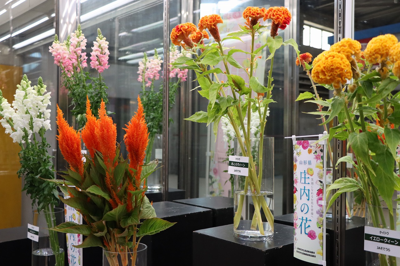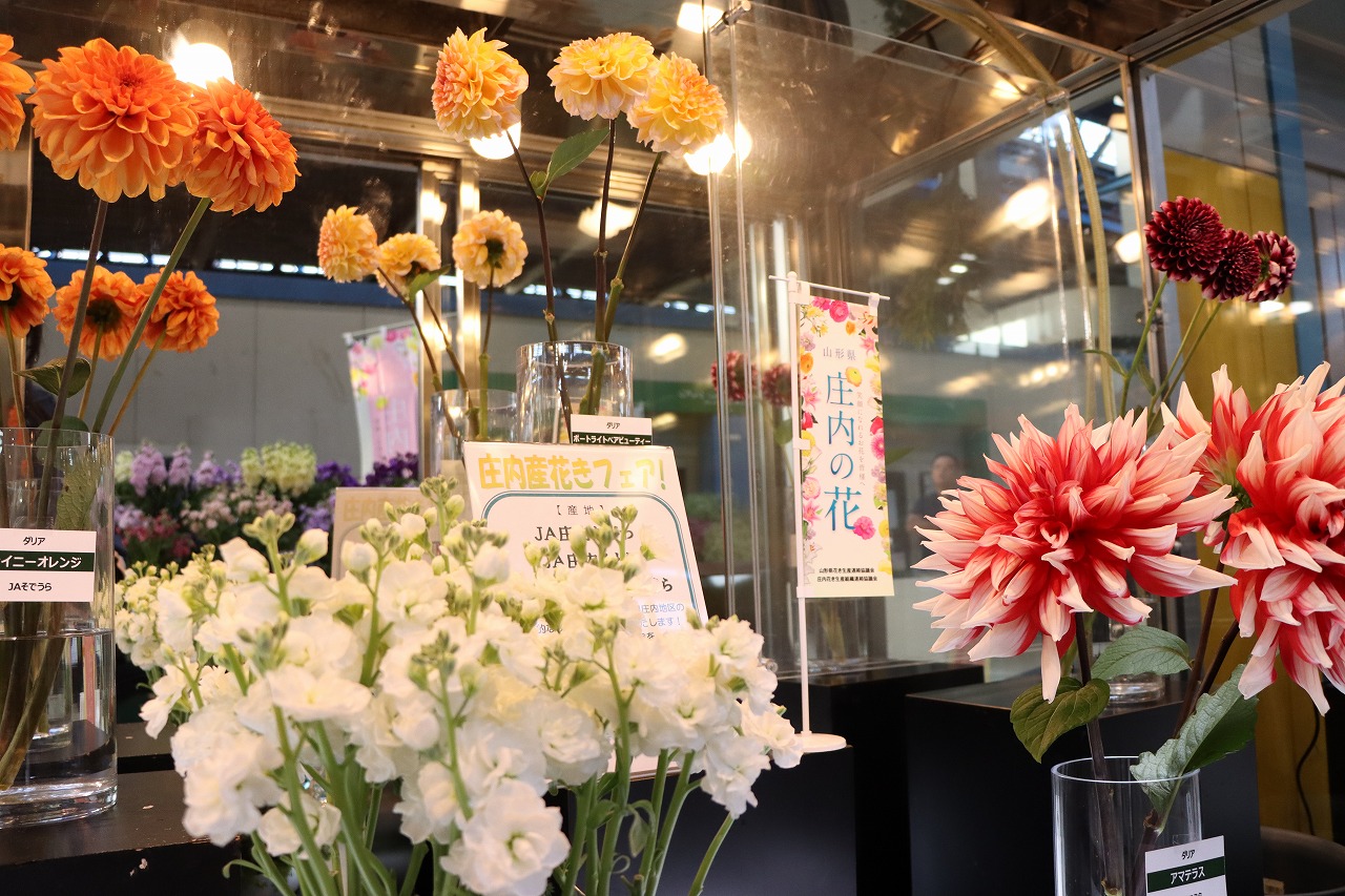 庄内は、寒暖差の大きい気候と豊かな土壌に恵まれ、力強く美しい花が育つ地域として知られています。今回のフェアでは、まさに出荷最盛期を迎えた庄内の品目を中心に、多彩なラインナップをご紹介しました。