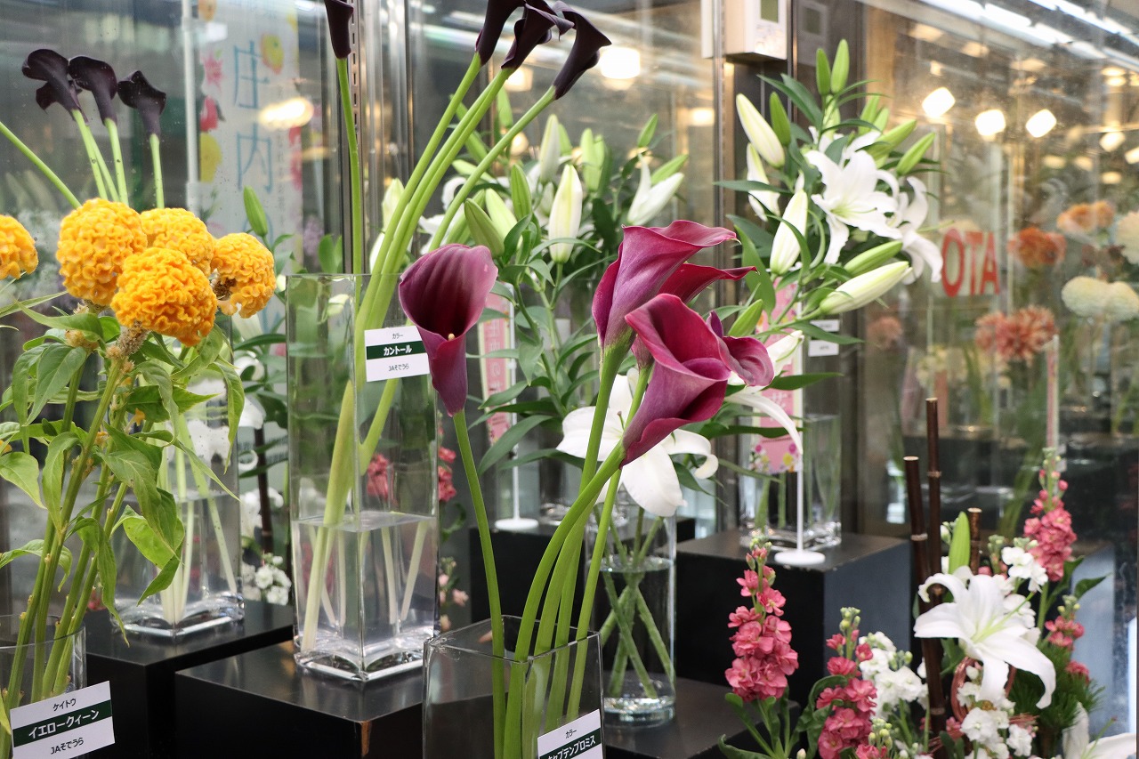 展示品目:ストック、ダリア、ユリ、カラー、ケイトウ、スナップ