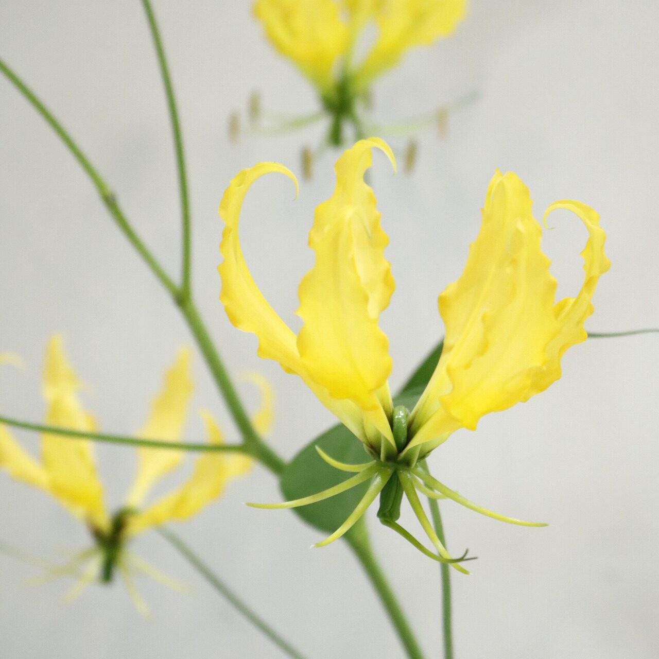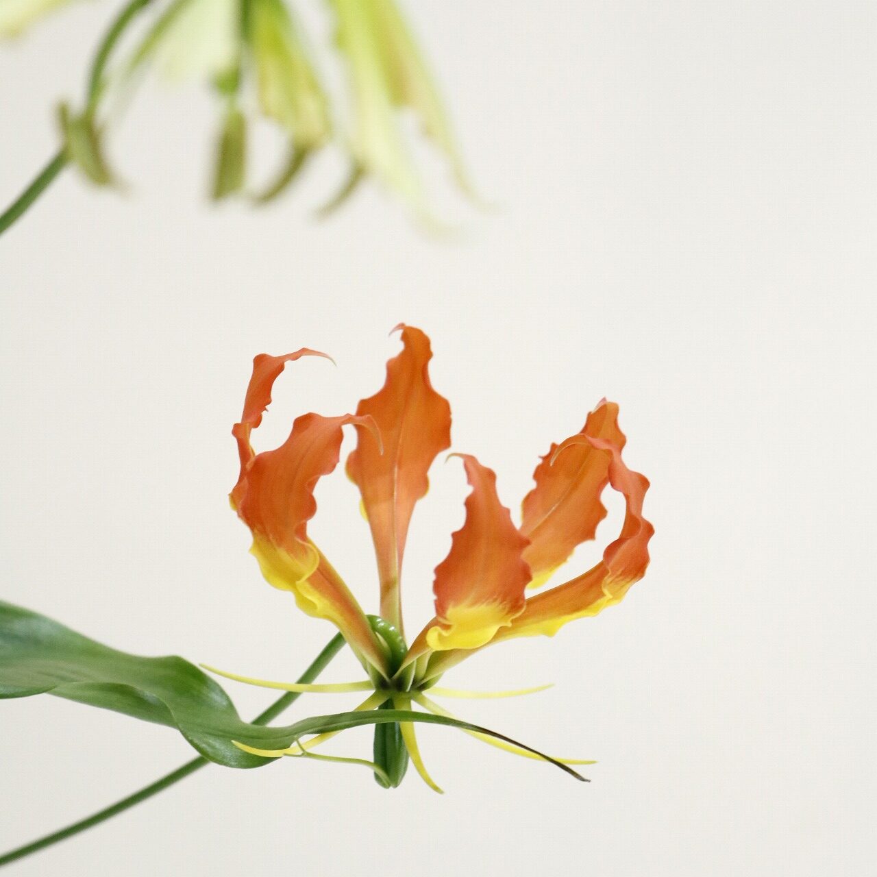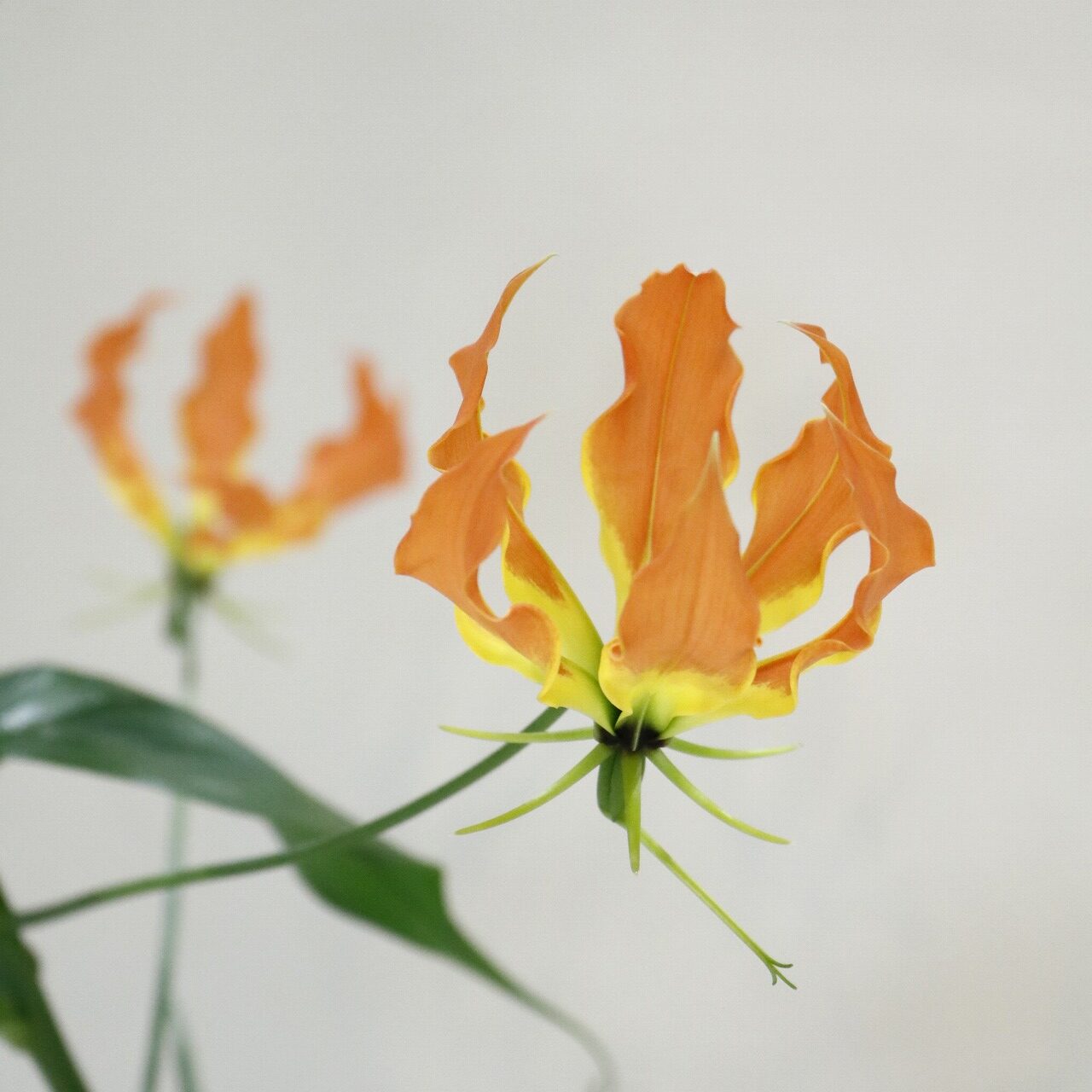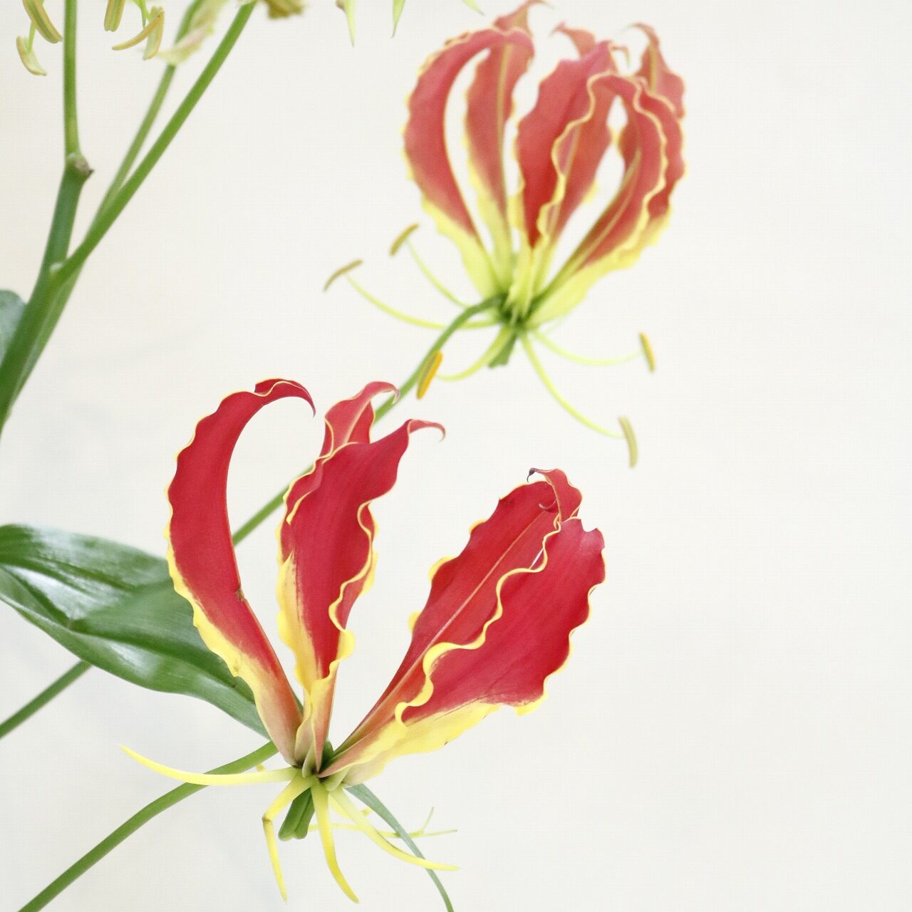 グロリオサは、日本が世界に誇る花の一つ。躍動感ある花姿と鮮やかな色彩は、迎春や華やかな装飾シーンにも相性抜群です。