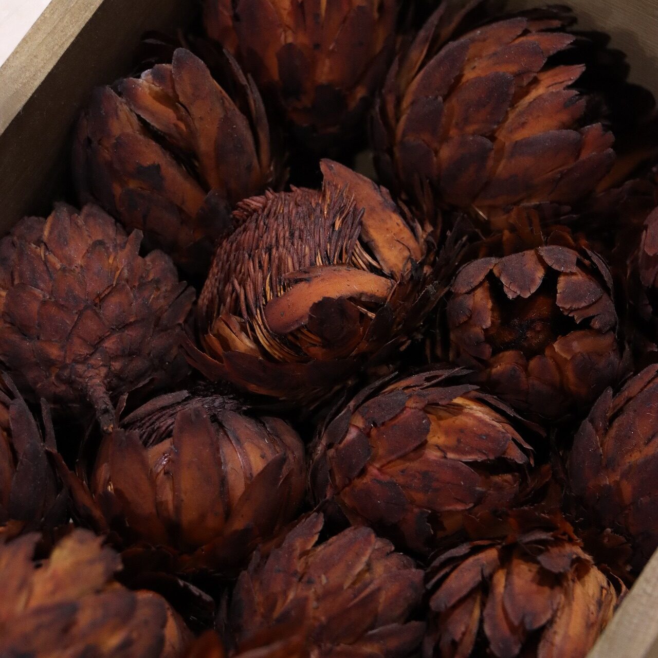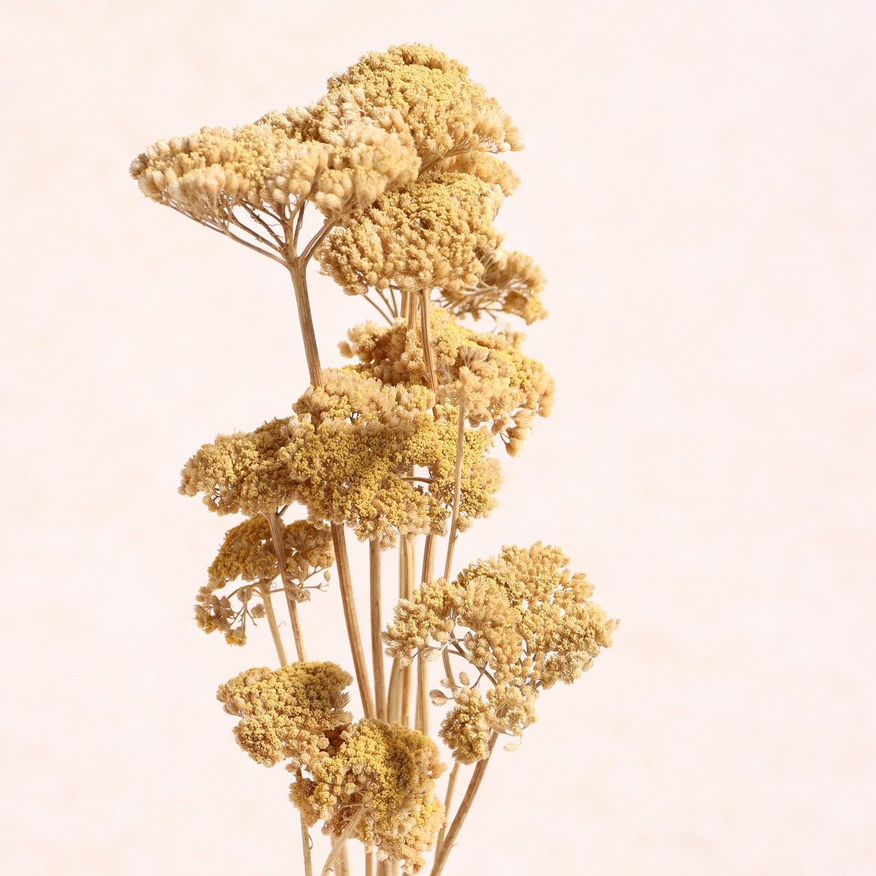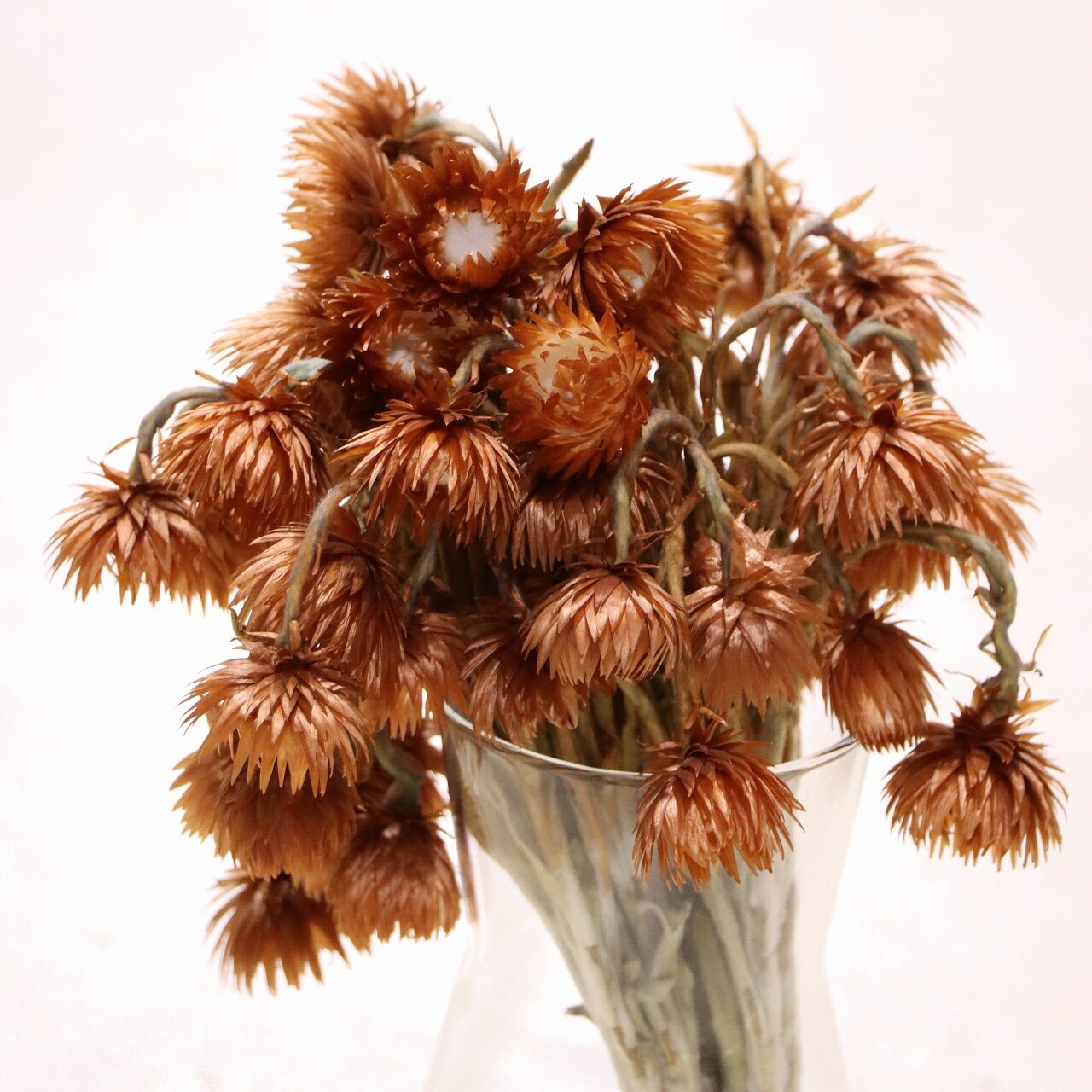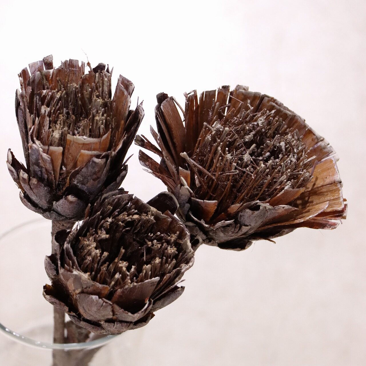 収穫後すぐに乾燥処理を行うことで、自然な色合いや質感を残しつつ長期間楽しめるドライフラワー。中国や南アフリカ、ドイツ等からセレクトし、トレンド感のあるカラーや形状を揃えています。
