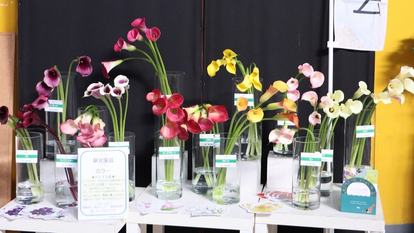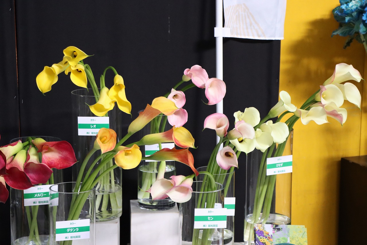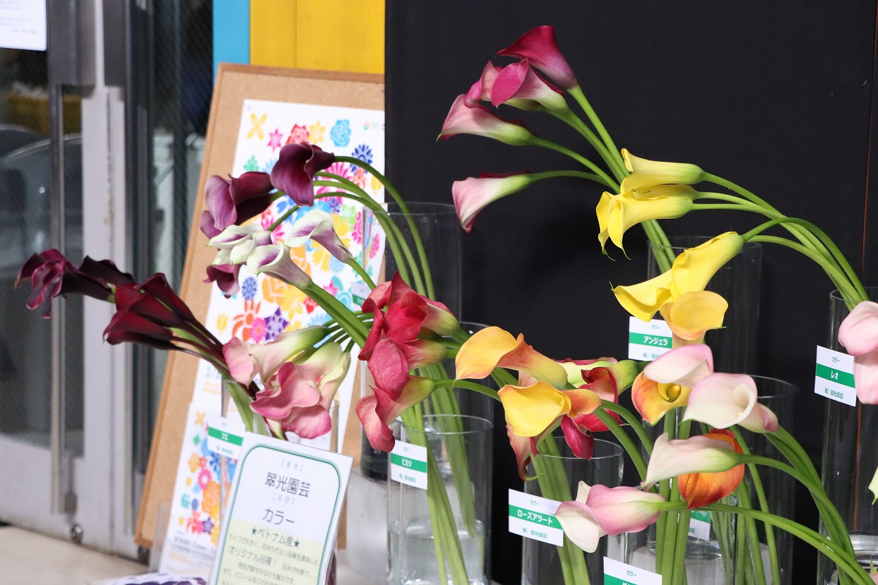 今回展示したベトナム産カラーは、カップが大きく、花弁は肉厚で、発色の鮮やかさも魅力です。