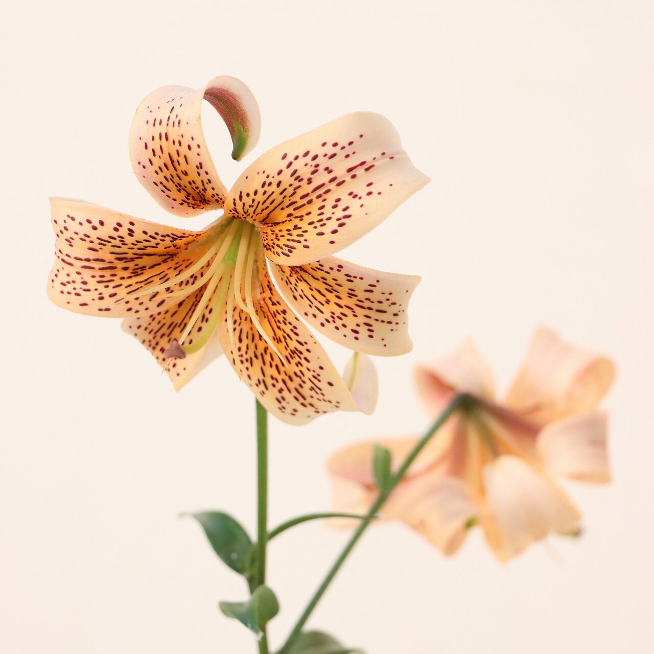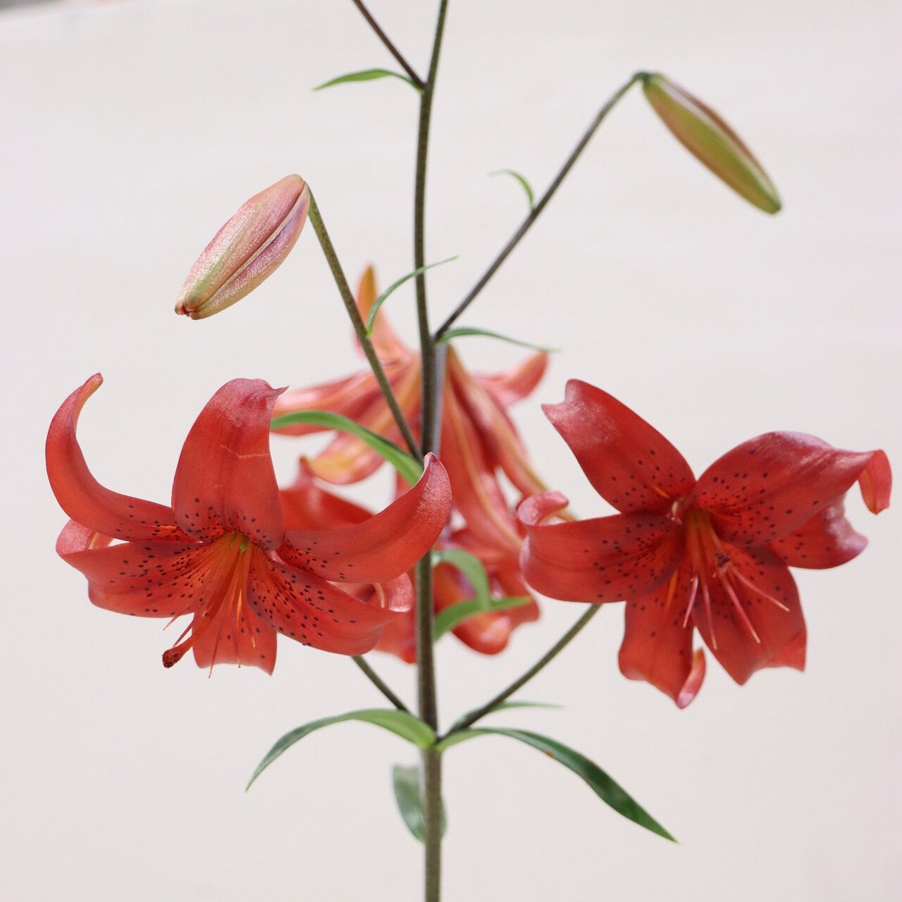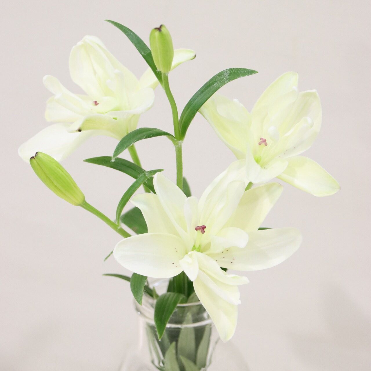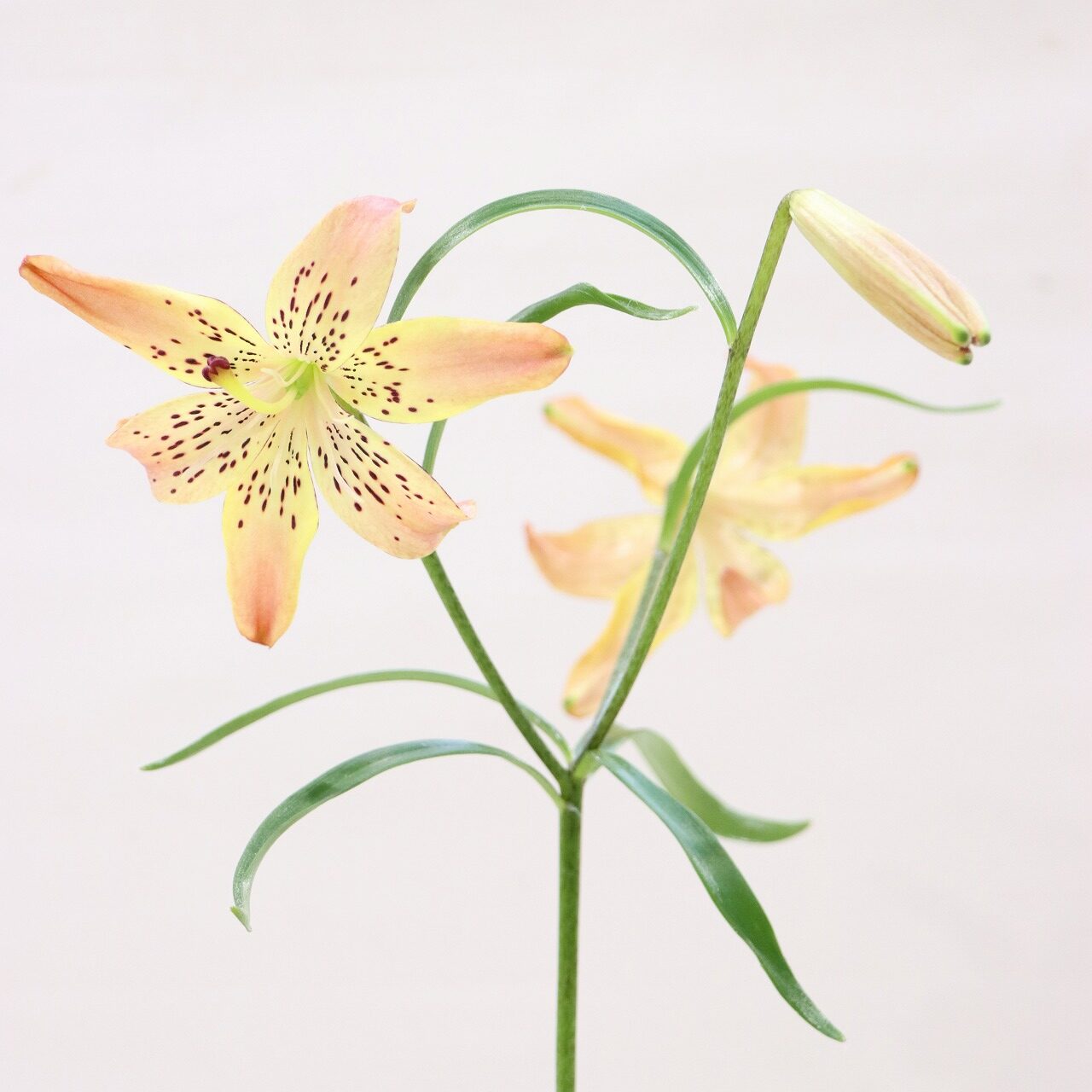 小ぶりな花サイズや、やや俯く花姿、丈の短いタイプなど、使い勝手の異なる品種を各色取り揃えて展示し、アジアティックユリならではの多様な表情をご覧いただきました。ボリュームを抑えたデザインや、軽やかな印象を出したいアレンジメントにも取り入れやすい点が特長です。