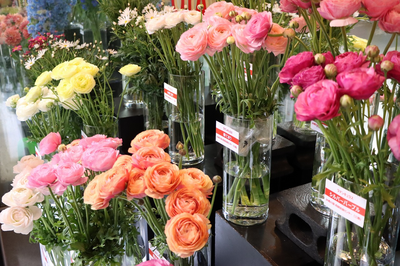 ラナンキュラスは、香川県育成の「てまりシリーズ」や三豊花き部会オリジナルの「竜宮シリーズ」が揃い、花形と日持ちの良さが特長です。