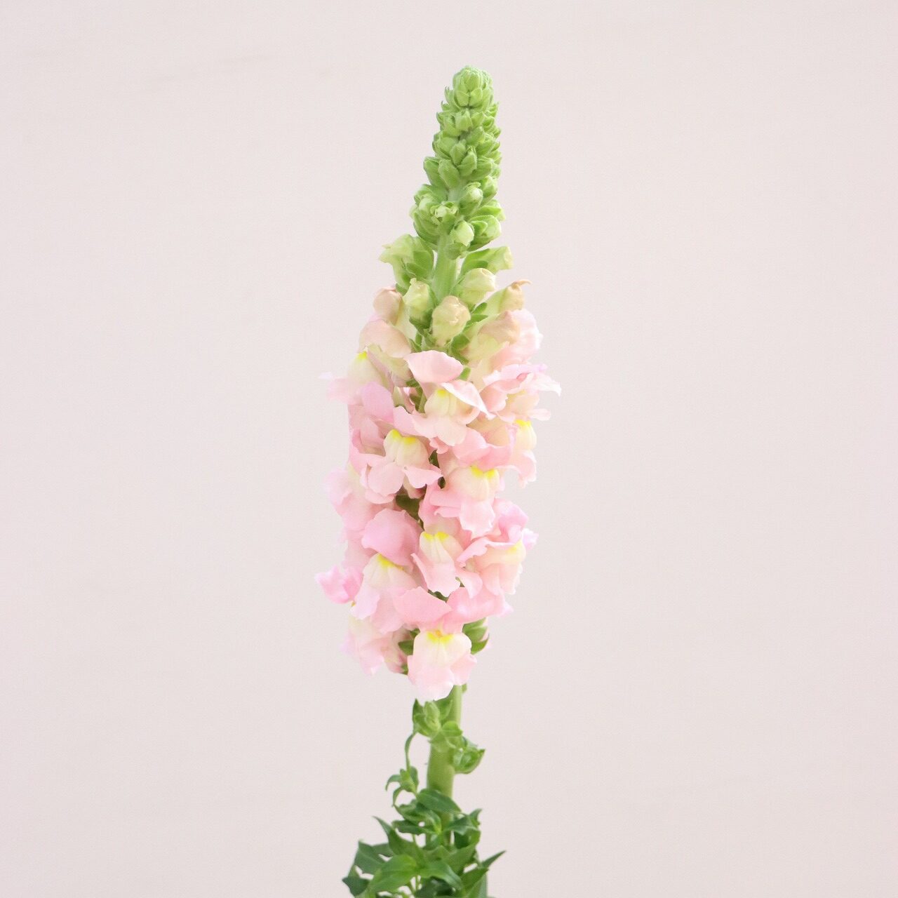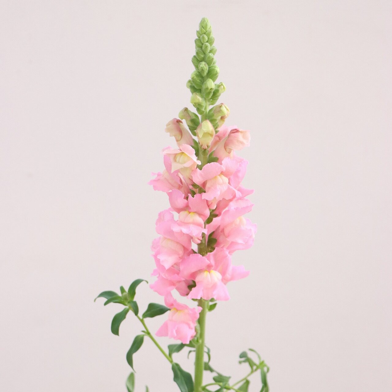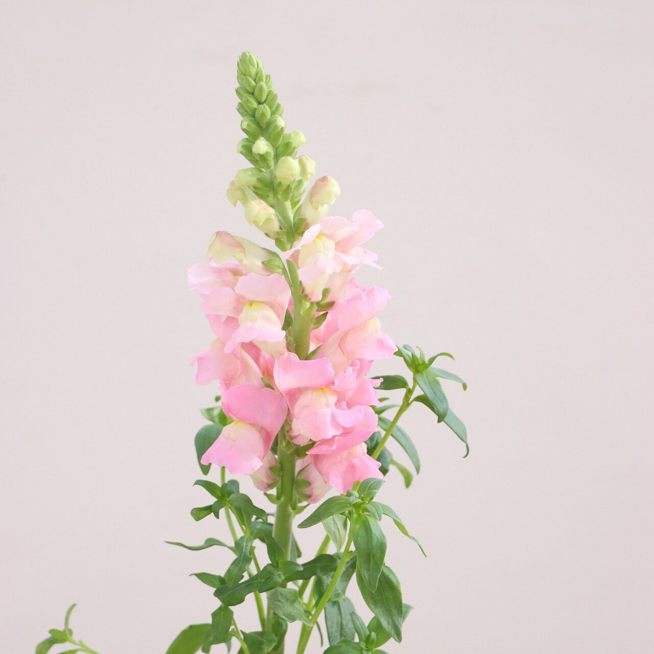 金魚草は、生育スピードが速い特性に合わせ、毎日のネット入れ作業やこまめな防除を行いながら栽培されています。日照量の多さを活かした張りのある花姿が印象的で、10月初めから5月末まで長期出荷されている品目です。