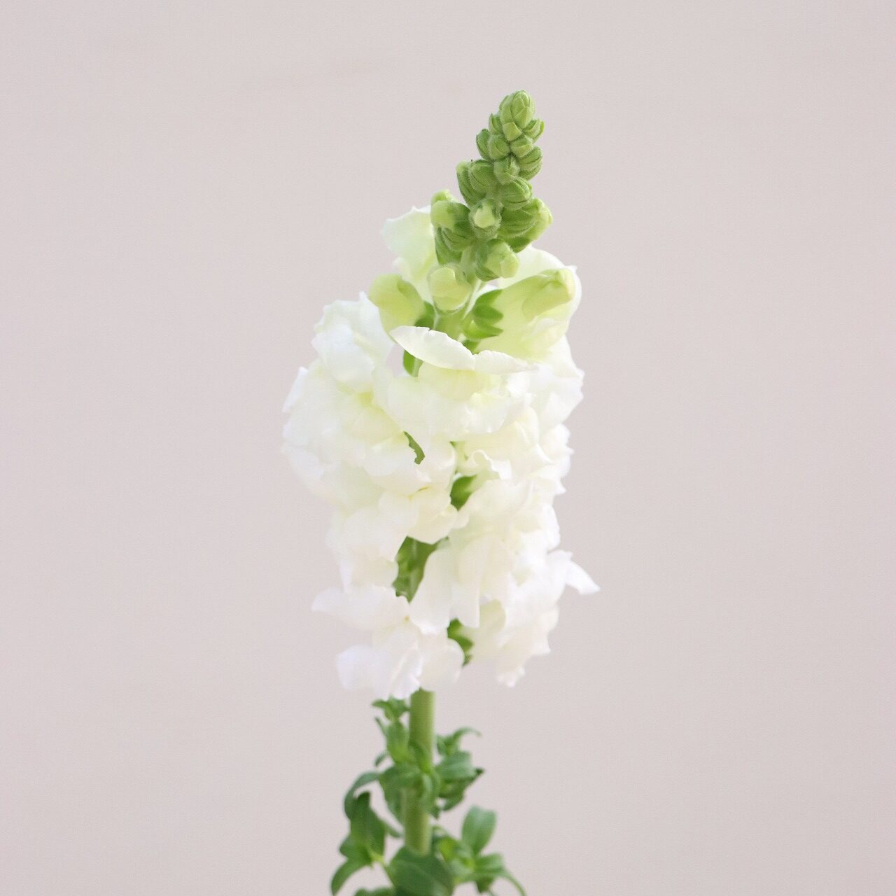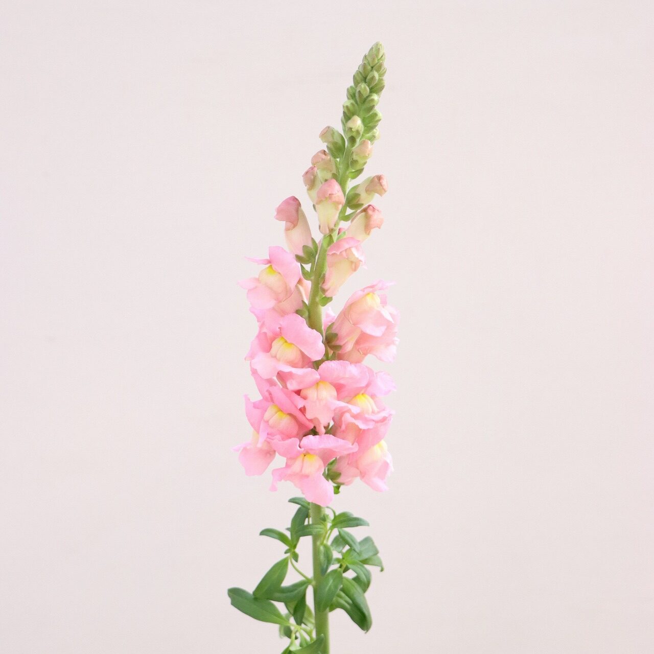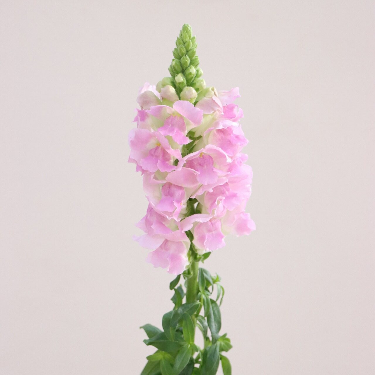 金魚草は、生育スピードが速い特性に合わせ、毎日のネット入れ作業やこまめな防除を行いながら栽培されています。日照量の多さを活かした張りのある花姿が印象的で、10月初めから5月末まで長期出荷されている品目です。