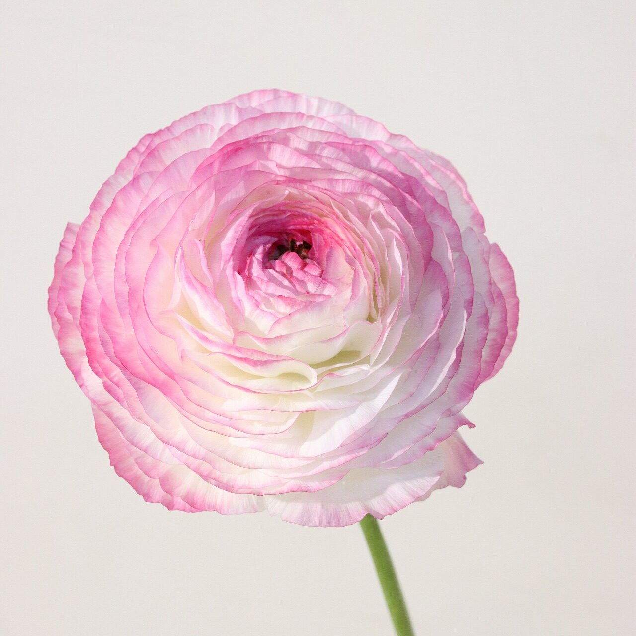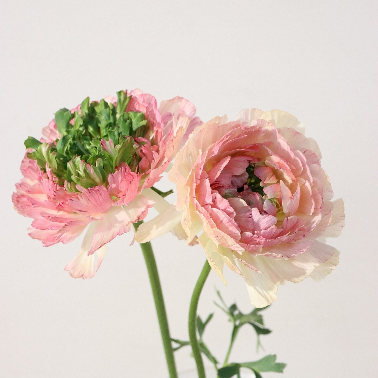 ラナンキュラスは、ノーマル品種をはじめ、ポンポン・ラックス・サクセスの4系統を栽培しており、約50品種という幅広いカラーバリエーションが揃います。さらに、オリジナル品種の栽培にも取り組んでおり、品種構成の豊かさが魅力です。