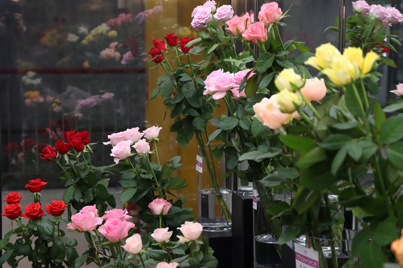 アヴァランチェ⁺やエンジェルキスなど、定番から新挑戦の染めバラまで幅広く展開中。