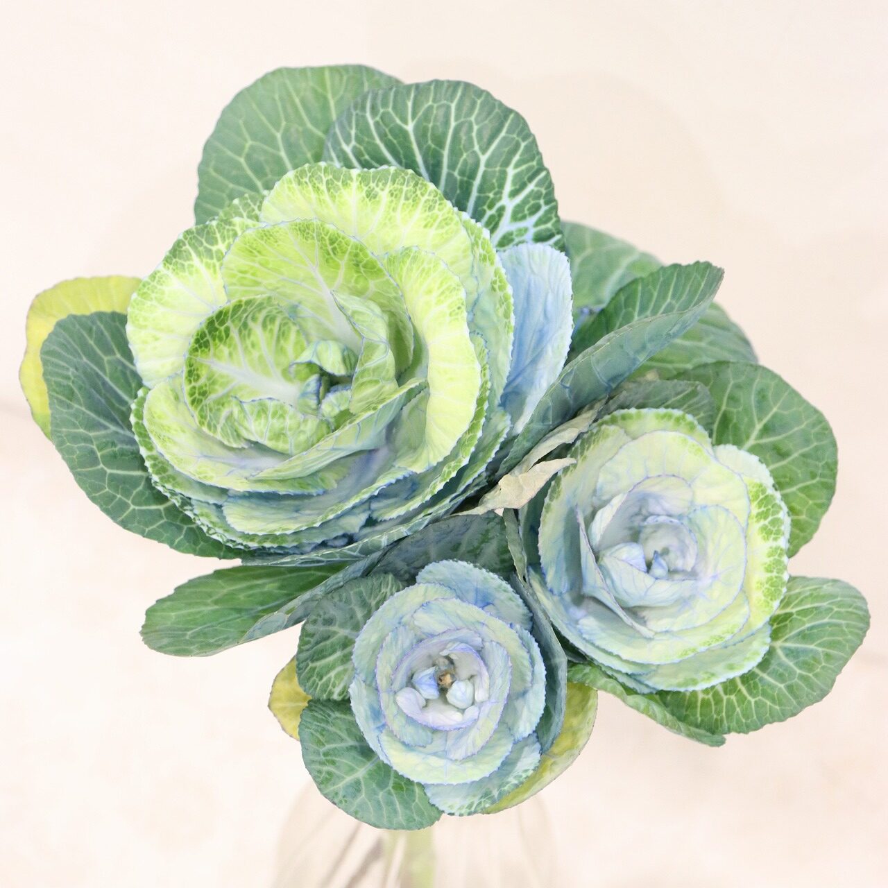 フリル葉の動きが美しいものから、バラや牡丹を思わせるボリューム感のあるタイプ、繊細なステムで扱いやすいサイズ感まで、作り手の工夫によって広がるハボタンの魅力。