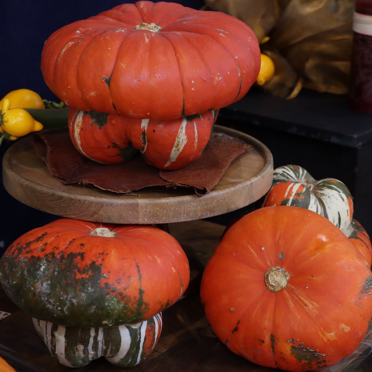ハロウィンのシンボル・カボチャをはじめ、秋の実りを感じる色味や実物を多数ご紹介。