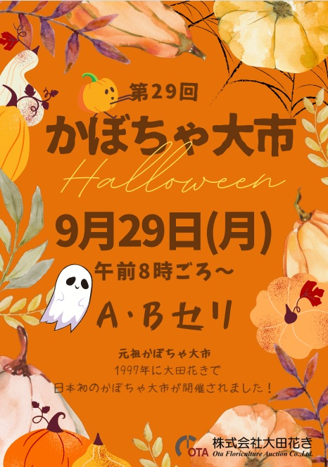 9月29日(月) 午前8時ごろ~第29回かぼちゃ大市を開催いたします。