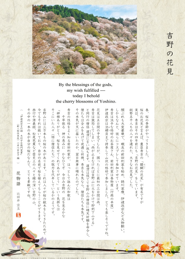 花物語~吉野の花見~ ショーケース ※ダウンロードしてご自由にご利用ください。 お問い合わせについては、営業本部までお願いします。 お問い合わせはこちらから Facebook Instagram YouTube «新潟県産チューリップ 2026.03.23