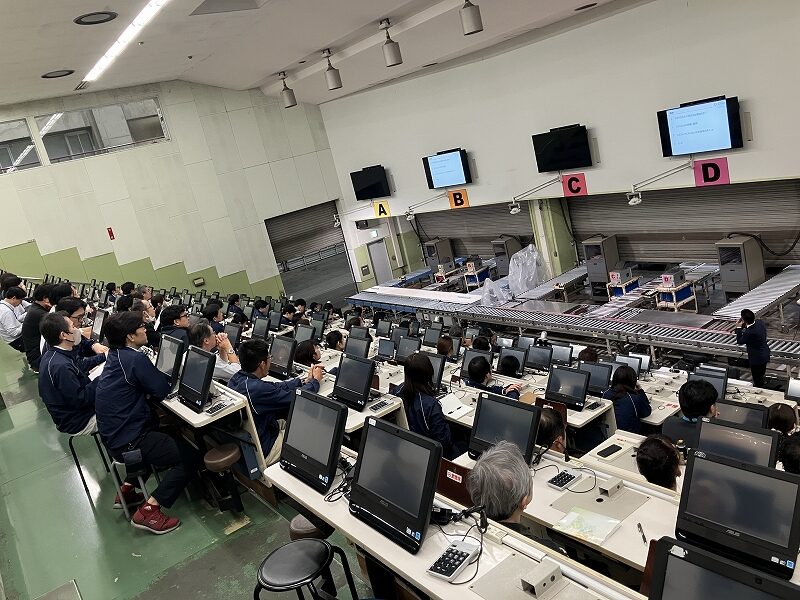 普段はせり時計を映しているモニターにスライドを投影し、いつもとは違う雰囲気の中での学びの時間となりました。