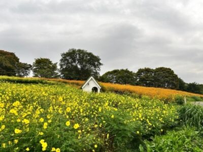 見頃を迎えていたキバナコスモス、紅葉コキアは丘一面に広がっており圧巻でした。