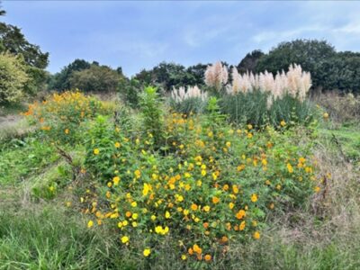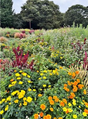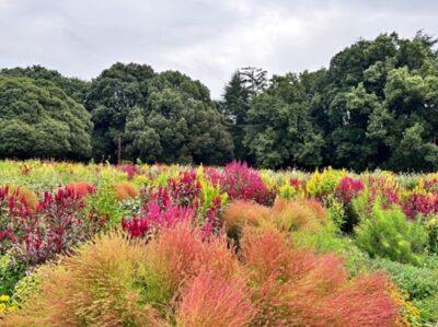 高さや色はバラバラでしたが、ハロウィンカラーで秋らしいお花畑でした。