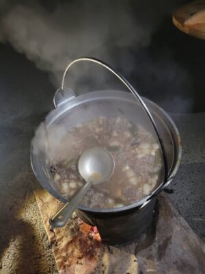 山形の芋煮会の歴史は古く、元禄7年(1694年)最上川からの舟運の要地として栄えた中山町で荷待ち間に、船頭や商人たちが最上川で運ばれた『棒鱈』と地元の『里芋』を材料に松に鍋を掛けて煮て食べたことが発祥らしいです。今回初開催となった10月24日は本来芋煮を開催する時期としてはちょっと遅く、全国で熊の出没も増えているタイミングでしたので参加するまではドキドキでしたが・・・そんな心配はよそに秋晴れで良い芋煮日和となりました。
