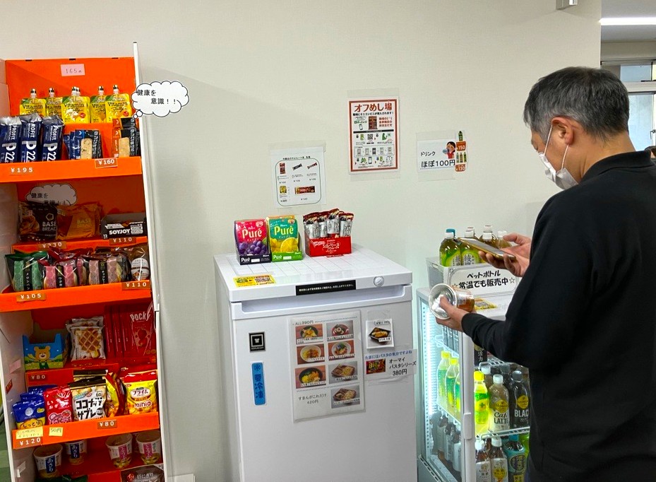 当社は24時間稼働していることもあり、勤務時間がそれぞれ異なります。ですが、会社のまわりには売店や飲食店が少なく、うっかり食事を持ってくるのを忘れてしまうと困ってしまう。またちょっと食べたいと思っても何もない、、、なんて課題がありました。