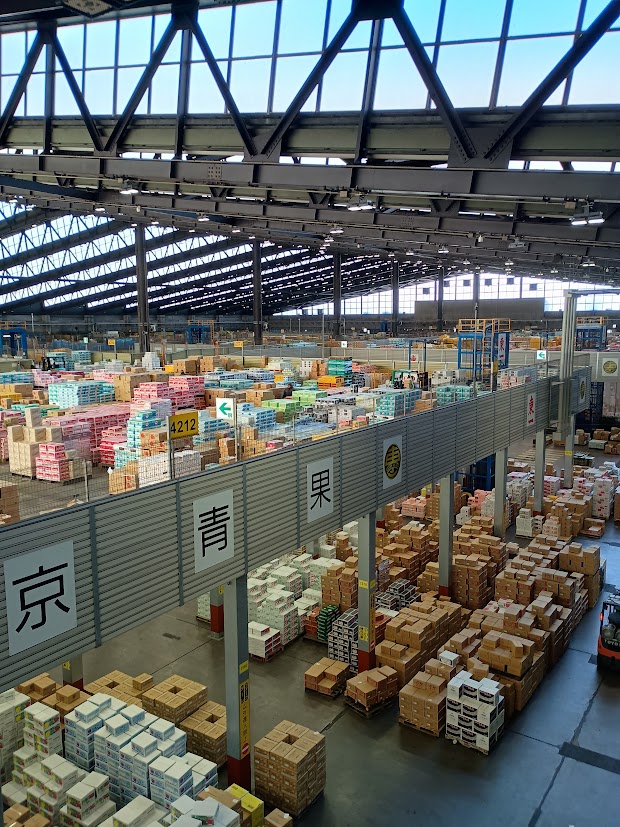 青果部は取扱額・面積ともに花き部の数倍の規模を誇り、古き良き仕組みを残しつつ現代ニーズに対応した機能を構築しています。