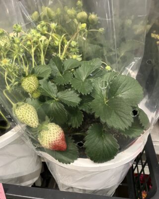 少し前(2月上旬あたり)に、苺の鉢物が出荷されているのを見つけました。