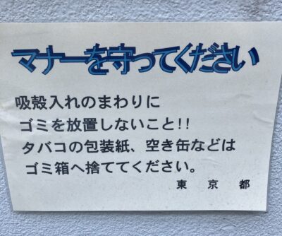 周りの方々は喫煙だけでも迷惑なのだから、せめてマナーは守りましょう。