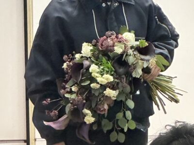 会議ではRock’n’Roseの曽我部翔様におつくり頂いたアームブーケを持たせていただきました。緊張しておりましたが「すんごくかわいい!!本当に素敵!!ガチで満たされる!!幸せのシンボル!!!」と心の中で最上級の幸せを噛みしめました。やっぱりお花って、かわいくて素敵で幸せで最高です!!きれいなウェディングドレスとセットだったら、きっともっとハッピー!!!