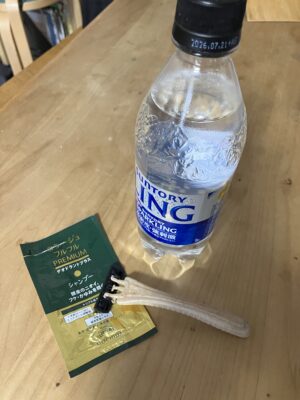 3回ほど繰り返し熱くなったところで、髪を洗いに戻る。試供品のシャンプーをとりだす。