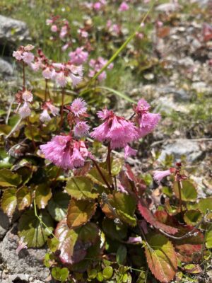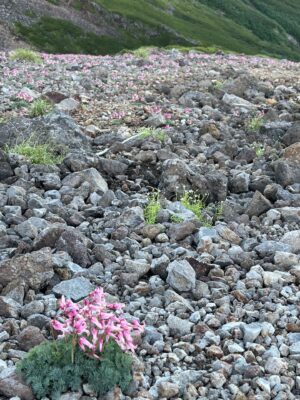 高山植物の女王のコマクサとイワカガミも初夏に凛と咲き誇ります。