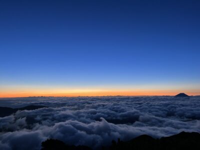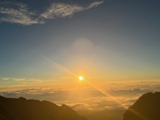 これは雲海が広がる中、一日のはじまりの告げる太陽が地平線からお出ましです。