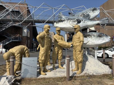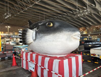 下関はふぐの取扱量が日本一だそうで、市場のマークもふぐでした。