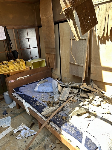 当日の朝まで加藤さんが寝ていらしたベッド・・・竜巻が起きた時にベッドにいらっしゃらなくてよかったというものです。