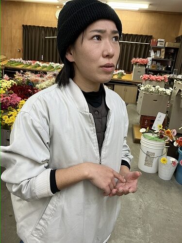 「そうだね。例えば電気が通っていないので、ガーベラにキャップをかける機械が動かないでしょ。だから手でキャップかけ。