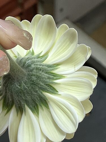 しかも、見ていますとそれぞれの工程でガーベラを手に取るたびに、360度くるくる回して、手際よくチェックしていらっしゃるのです。まさに優等生中の優等生しかアミマさんを卒業できないわけですよ。