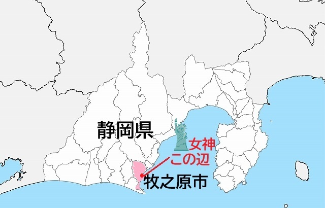 牧之原って、ニューヨークの女神が立ち、サーファーの聖地として知られる静波海岸を擁する牧之原市・・・??