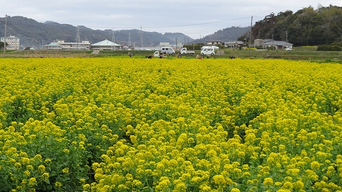 ・・・という歌のようには陽は傾いていませんが、この満開の菜の花畑の情景を前にすると、『朧月夜』のイントロが思わず頭をめぐります。