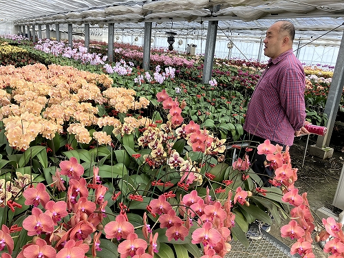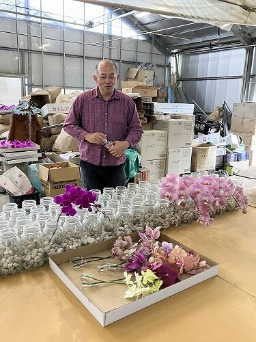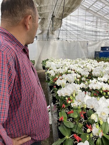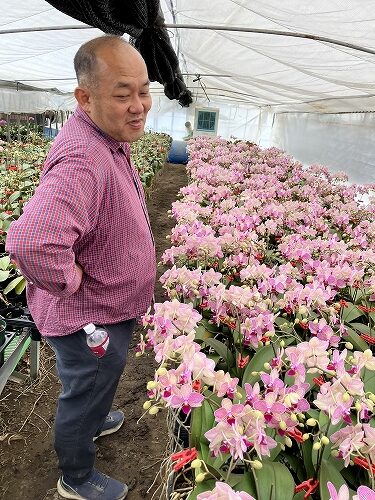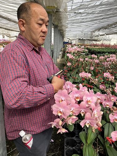 その理由は、トレンドに即した品種の導入のみならず、ミディ系や色付きの切花コチョウランを無傷で完璧なまでの品質で、またバイヤーさんたちが必要な時に必要な量を確実に手に入れられるよう、生産量を考えながら取り組まれているということにあります。お客様の細かい注文にも、一つ一つ丁寧に答えてくれることでも、その名が知れ渡っています。