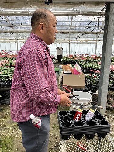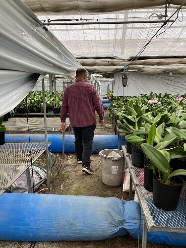 「ハウス②に移動してから4.5か月から6か月で開花するので、母の日とかウェディングシーズンなど、マーケットがこのタイミングでほしいだろうからと需要を予想して、そこから逆算してハウス②に移動するんだよ」