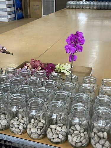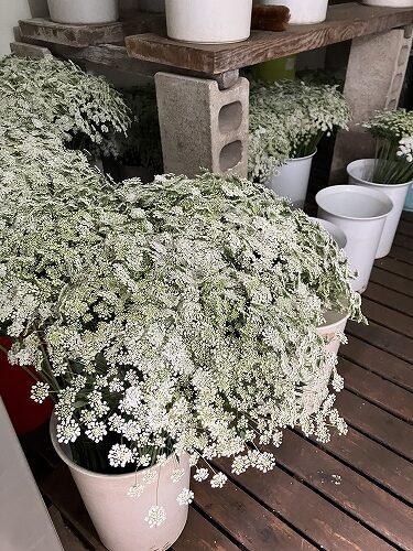 「秋の婚礼シーズン向けの商品は、4.5か月前に当たる4-5月にハウス②に入れるんだけど、その倍くらい移動するよ」