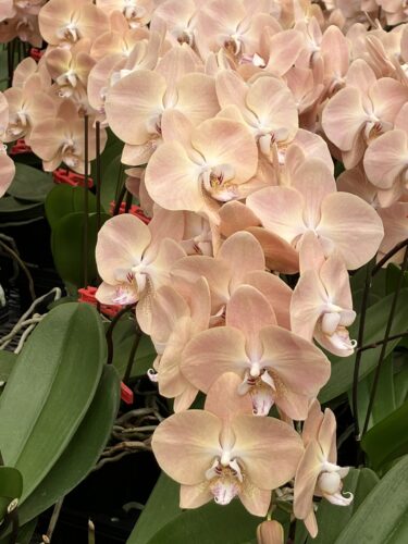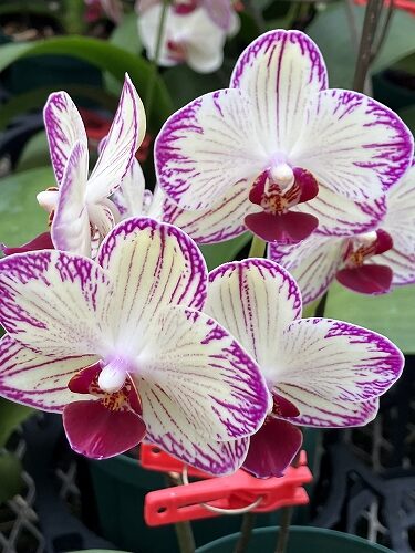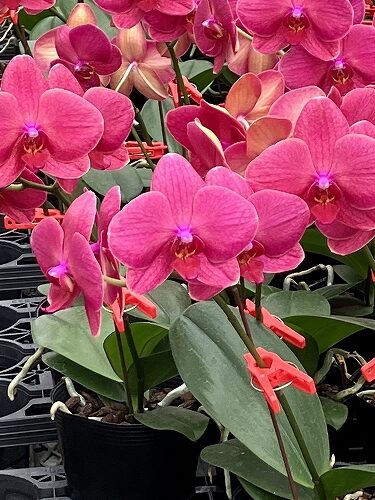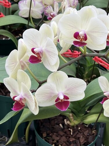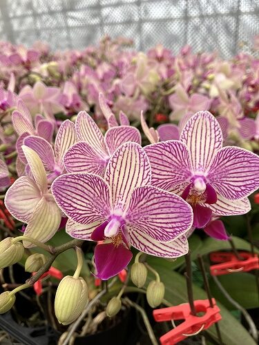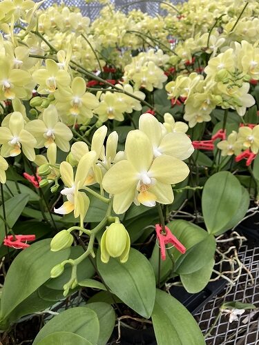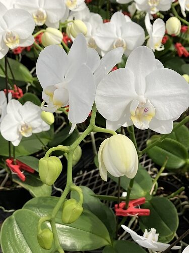 *ファレノのミディ系=鉢物のコチョウランで見るような一般的な大輪種より花や株が小さい品種群。白や色が付いているものを含みます。